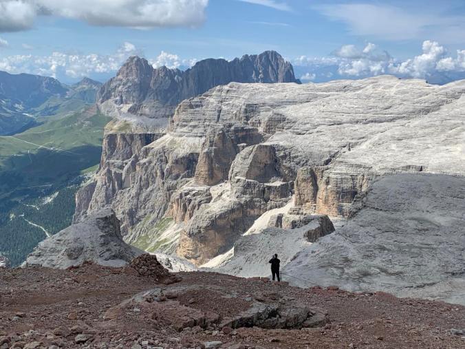 Piz Boe: Vi starter med taubane fra Passo Pordoi (2240 moh) som tar oss opp til ein av dei mest besøkte toppane i området, Sass Pordoi (2947 moh) Herfra starter dagens vandring i noko som ligner eit månelandskap. Det blir kortare parti der vi held oss i tau og går i enkelte metalltrinn. Sjølv om den krev eit sikkert trinn, byr ikkje ruta på betydelige vanskelegheter. Toppen Piz Boe når vi på 3152 moh, og vi blir belønna av ei fantastisk utsikt! Medium vanskelegsgrad. 7,8 km. Estimert tid 3 timer og 15 minutt.