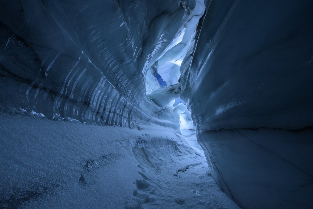 Mohnbukta: Eit vegkryss leder østover, til breplatåa som strekk seg fra nord til sør på Spitsbergen. Etter ein fot i bakken og en ekstra sikkerhetsbrief, bærer det gjennom et morenelandskap av blå is formasjoner. På rekke og rad snirkler vi oss igjennom området før vi kjøyrer over dei snødekte breene som fører til østkysten og Mohnbukta. Her venter det ein heilt ny verden av is så langt auge kan sjå. Langt bort mot aust kan vi og få et glimt av Edgeøya, som er den tredje største øya på Svalbard.