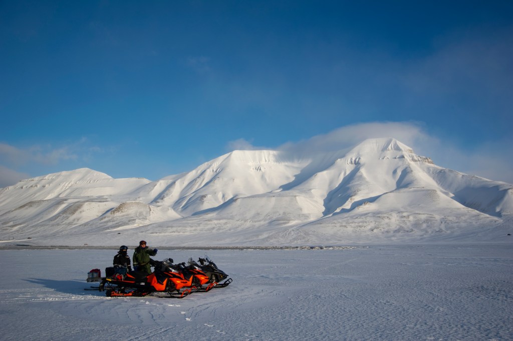 Når tida er inne, pakker vi ned, setter oss igjen på snøscooterane og vender tilbake til Longyearbyen. Ein lang og opplevelsesrik tur er snart ved vegs ende.